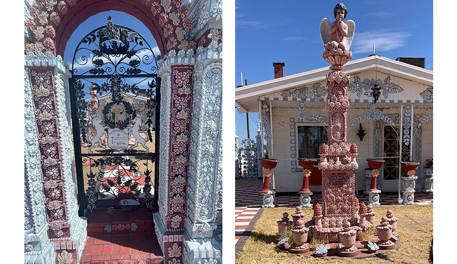 Skirting the north edge of El Paso, Texas, my friend Thea and I discovered a unique treat tucked inside a modest working-class neighborhood, constructed half a century before Highway 54 burst its seams. As we wound past row after row of unremarkable tract homes, heat waves rose from the broken asphalt streets. Suddenly we turned a corner, and there it was—the Sugar House or La Casa de Azucar, as it is called in Spanish.