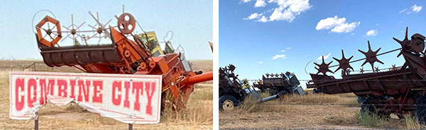 If imitation is the sincerest form of flattery, then Cadillac Ranch has received two big compliments. About 20 miles away in Lake Tanglewood lies Combine City, another art installation composed of retired combine tractors sunk at an angle in a remote farm field. This roundup of machines, however, is not interactive: a barbed wire fence surrounds the tractors to prevent visitors from getting closer, and there is no invitation to add your own colorful embellishments. But this is understandable. The combines’ star wheels—used to engage with the crop and guide it through the machinery—have sharp, rusty projections that just scream “tetanus shot” to the ears of a pediatrician’s wife.