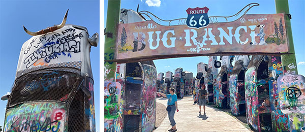 Another off-shoot of Cadillac Ranch is the Bug Ranch. Once called the “Slug Bug Ranch” and located along Route 66 near Conway, this art installation has nothing to do with insects, although they do grow ‘em big down south. In the original location, the owner Tommy Crutchfield (or perhaps his brother Ricky—there is some dispute about this among the family) took five Volkswagen Bugs and half-buried them nose down as a tribute to Cadillac Ranch.